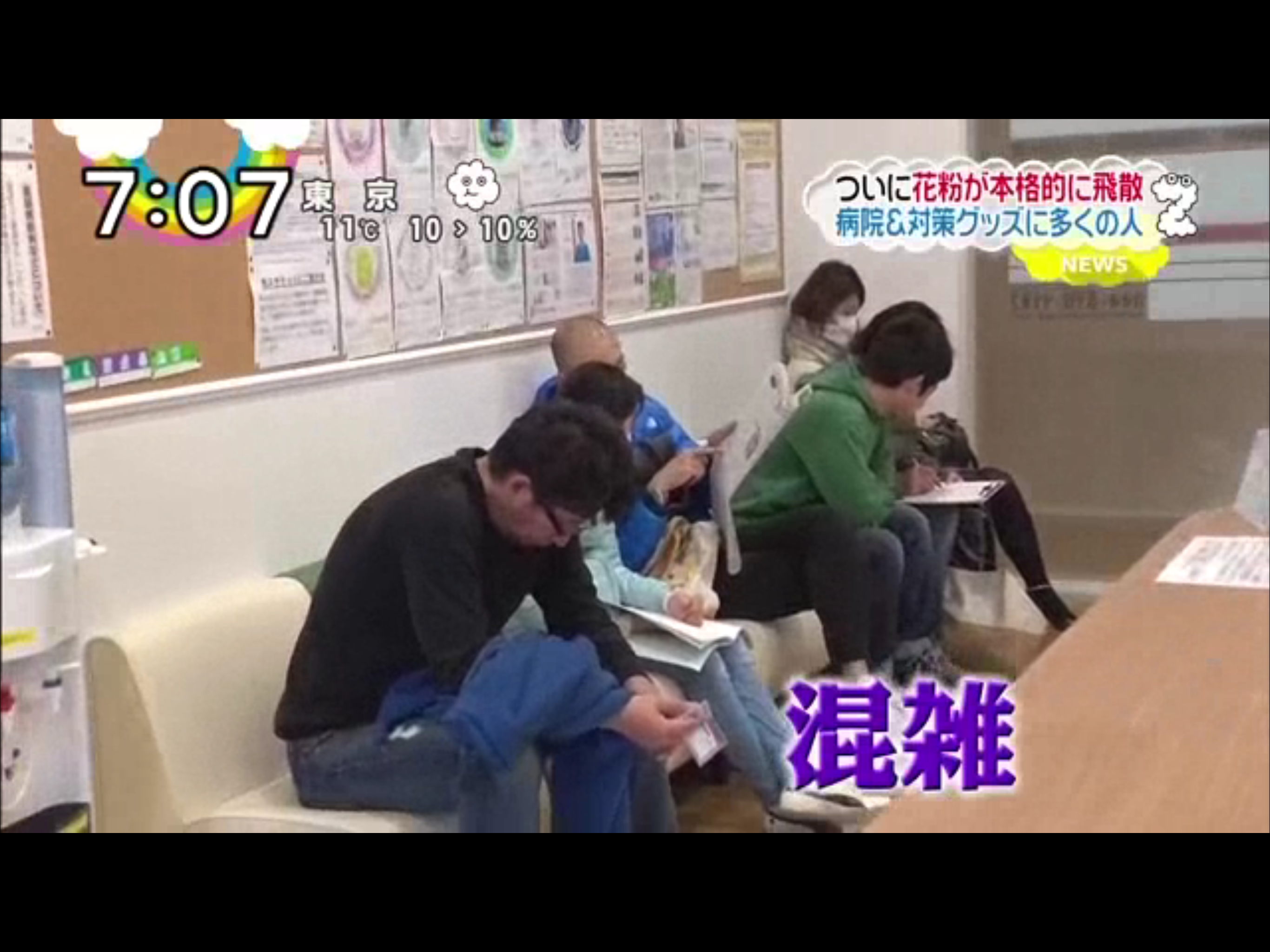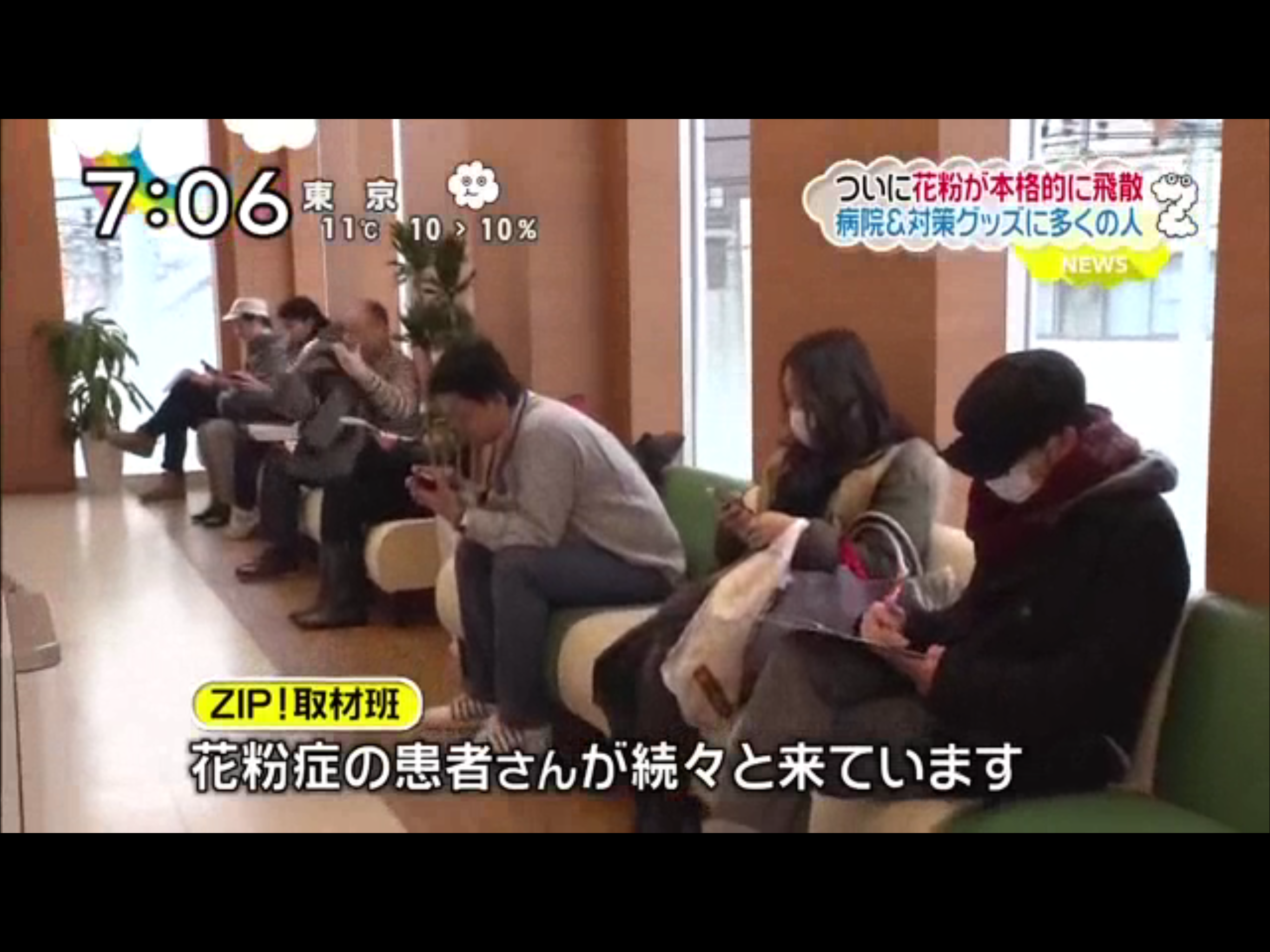 今朝の日本テレビ「ZiP!」の花粉についての紹介で当院が取り上げられました。朝早くから番組を見ていただいた方もいらっしゃったと思います。ありがとうございます。