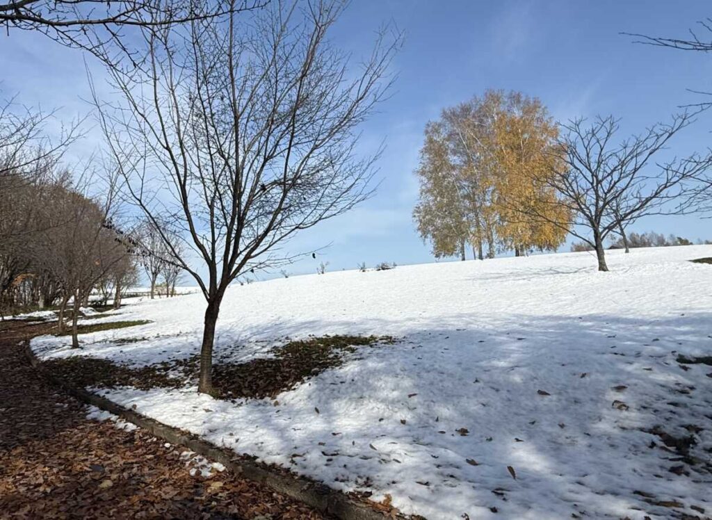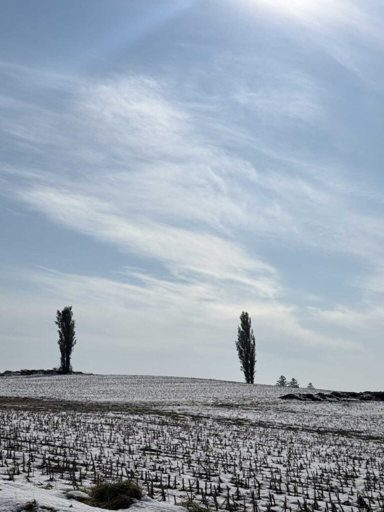 朝の光が差すたびに、雪がやわらかく反射して、丘の輪郭が浮かび上がる。