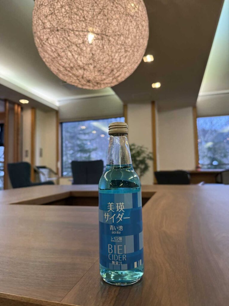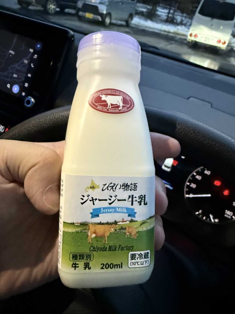 風呂上がりは美瑛サイダーを一気に、続けて濃厚なジャージー牛乳。
