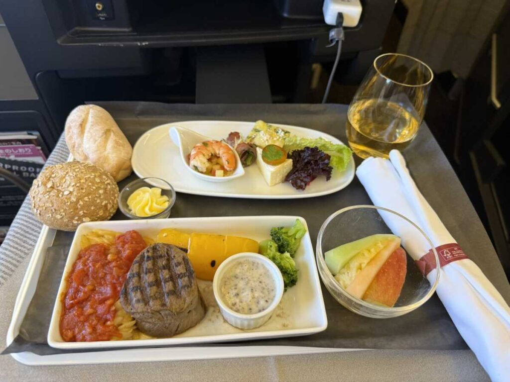 機内で出た牛フィレが、焼き加減まで見事だった。