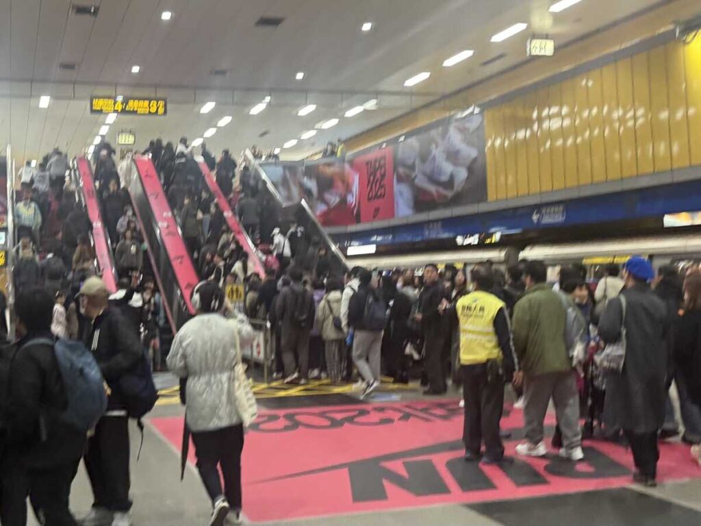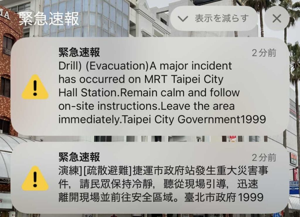 駅構内は人でごった返し、どこか落ち着かない空気が漂っている。スマホには「重大な災害が発生、速やかに避難を」といった緊急速報が英語と中国語で表示された。