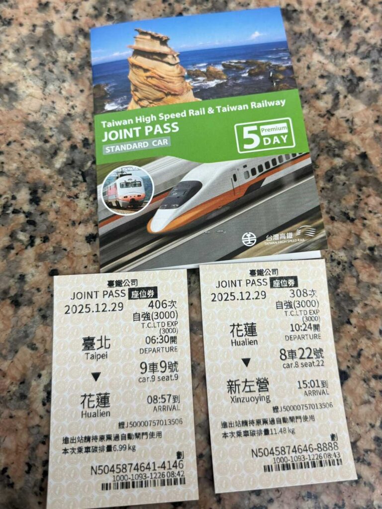 一つは、台湾版の新幹線にあたる高速鉄道(現地では「高鉄」)の窓口で、ネット予約しておいたパスの受け取り。今回使ったのは「外国人専用・高鉄&台鉄 特級5日ジョイントパス」で、クレジット決済は16,548円だった。台鉄は連続5日間乗り放題、高鉄はその5日間のうち任意の2日が乗り放題、という“旅人に都合の良い設計”だ。事前に利用日登録やパスポート番号の入力もあり、地味に手間はかかった。