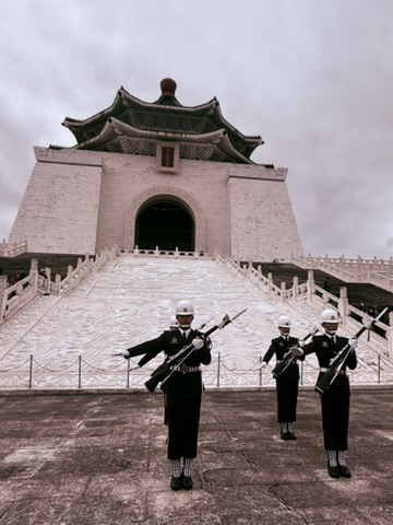 次に向かったのは中正紀念堂。蒋介石(しょうかいせき)にゆかりのある施設で、広い広場を抜け、建物に近づくにつれて空気が変わる。観光地というより、どこか“式典の場所”だ。