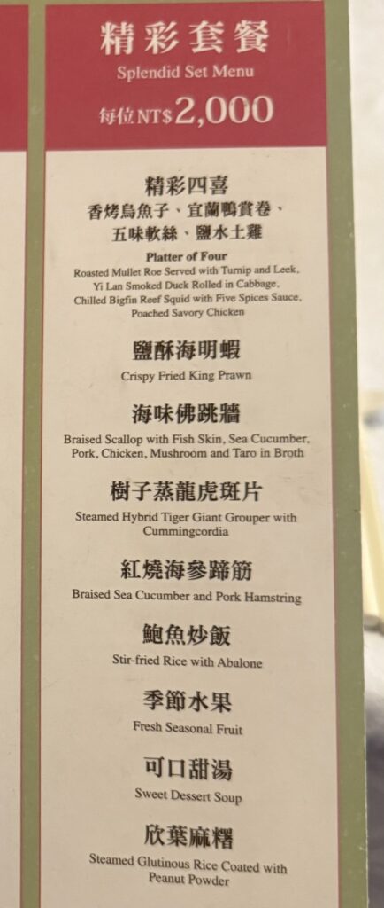 選んだのは、「精彩套餐(Splendid Set Menu)」。
