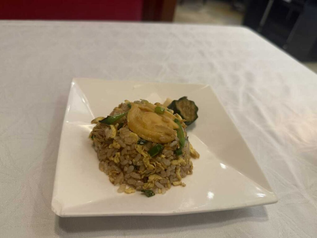 そして最後が「鮑魚炒飯」(鮑の炒飯)。高級食材・鮑が乗った炒飯を前にした時点で、「今日のランチは勝ち」と確定する。