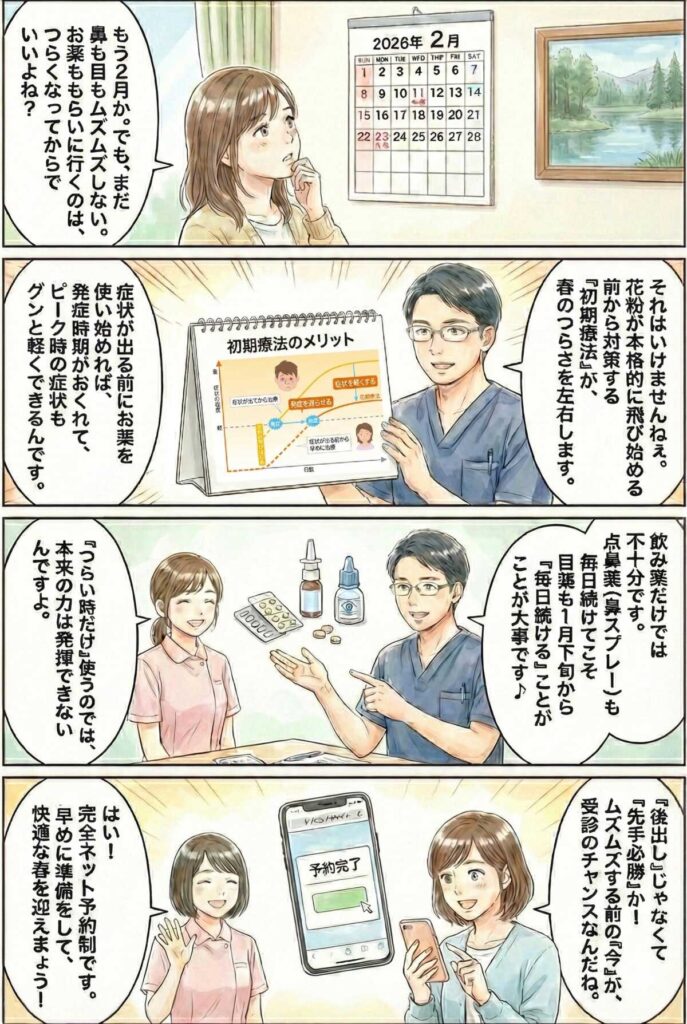 【漫画】花粉症は「症状が出る前」の早めの受診がポイントです🌸