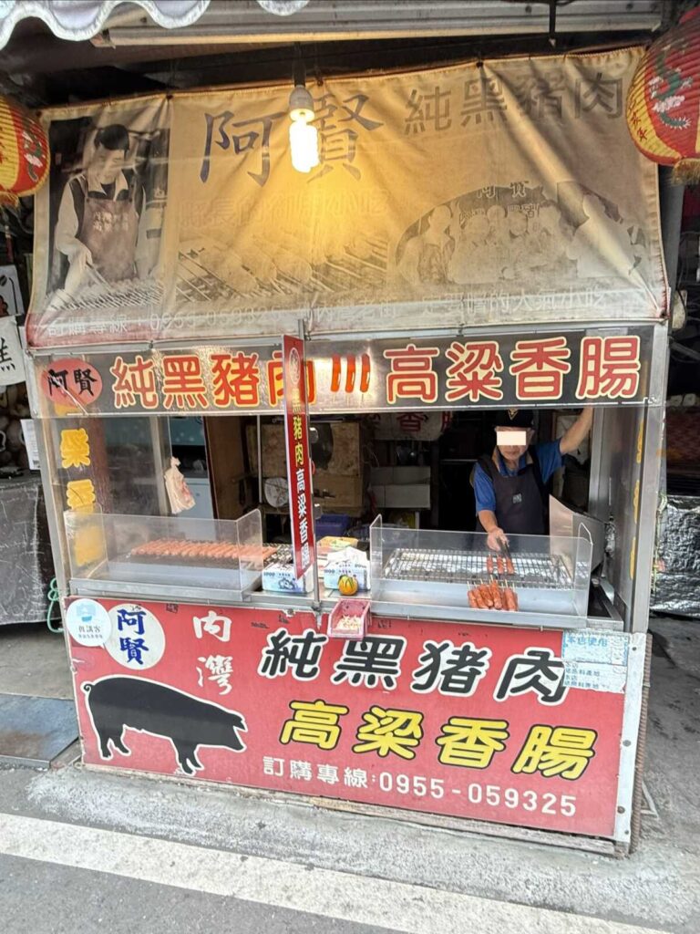 炭火で焼かれた黒豚のソーセージは、日本のものとは違う独特の甘みと八角などの香辛料が際立つ、まさに台湾ならではの味だ。