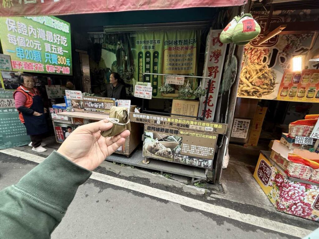 特に外せないのが、この地の名物である「野薑花粽(ワイルドジンジャーのちまき)」だ。一口頬張ると、野薑花の花や根を練り込んだという爽やかで高貴な香りが鼻に抜け、脂っこさのない上品な味が広がる。小ぶりなサイズも、トリアージ中の胃袋にはちょうどいい。