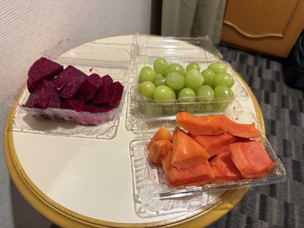 16:30、ホテルサンルート台北に帰館した。夕食は昨日も訪れたお気に入りのミシュランの店「黄記魯肉飯」をテイクアウトし、これまた行きつけの果物店で買ったフルーツを並べる。台北の定宿を拠点に、馴染みの店をリピートする。それは、この街で「住むように旅をする」ことの象徴だ。