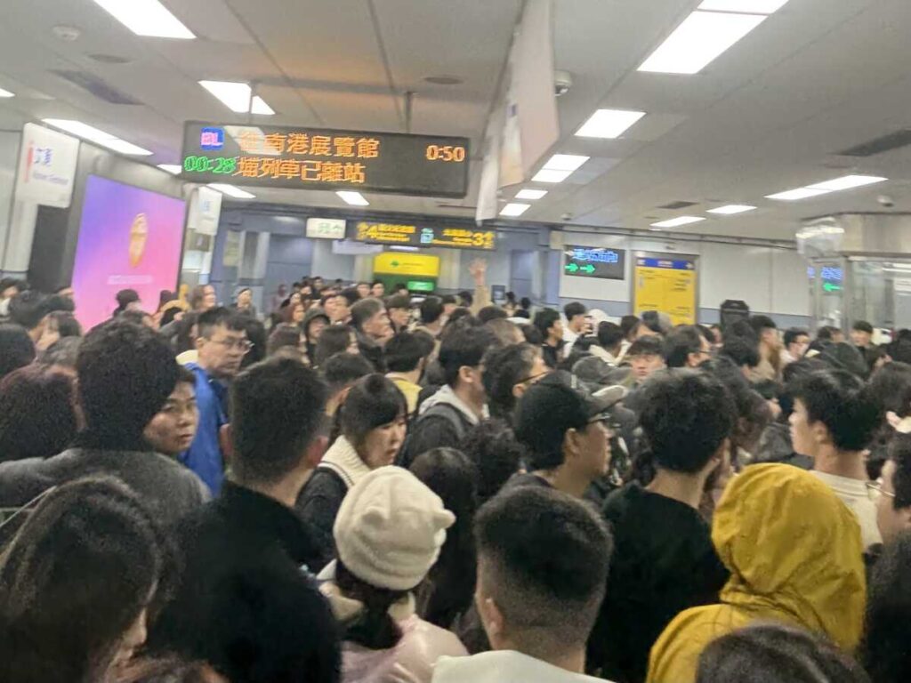 花火終了直後の0:08頃、移動開始。迷わず国父紀念館駅へ向かう。やはりMRT(地下鉄)駅は入場規制であった。しかし、花火終了後すみやかに帰路についたおかげで、20分ほどで駅に入場できた。実は混雑で2時間くらいは待たされることや最悪徒歩での帰宅も考えていただけに、ありがたかった。駅構内は当然混んではいたが、ここで奇跡が起きた。国父紀念館駅が始発の臨時列車が投入されていたのだ。花火会場最寄りの市政府駅を空車で通過させ、こちらで一気に乗客を救い上げる運行管理。凄まじい人混みの中で、これは戦略が生んだ奇跡に近い帰還劇だった。